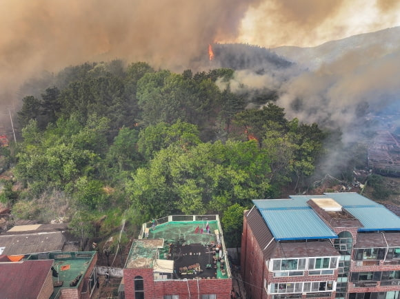 대구 산불, 초당 11m 강풍 타고 민가 확산…1200명 대피